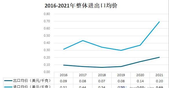 2016-2021年全體進出口均價