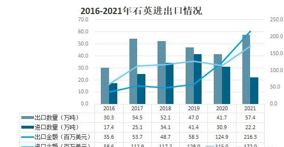 2016-2021年石英進出口情況